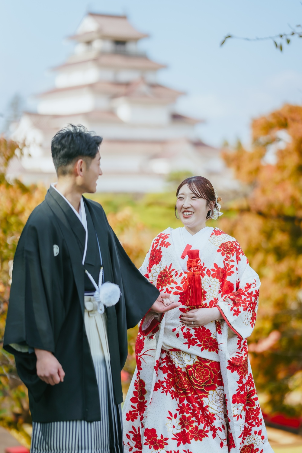 Photo Wedding Report フォトウエディング撮影レポート HOME > 撮影レポート > 和装プラン > Report#404 Report#404 和装プラン 秋 会津武家屋敷 鶴ヶ城 色打掛 古民家 紅葉 マタニティフォト プラン 和装プラン →このプランの内容・料金を見る 撮影時期 秋 ロケーション 会津武家屋敷 鶴ヶ城 衣装 色打掛 その他ご要望など 10月に紅葉が綺麗な場所で撮影したい
